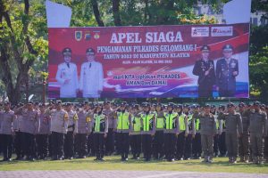 KLATEN- Pemerintah Kabupaten Klaten dalam rangka mewujudkan Pemilihan Kepala Desa (Pilkades) serentak Gelombang I di 67 Desa yang akan dilaksanakan, Rabu (05/07/2023), menggelar apel siaga pasukan pengamanan. Diikuti Forkopimda, Sekda Kabupaten Klaten, Asisten, Kepala OPD, TNI, Polri, Camat di 22 Kecamatan, Kepala Desa, Dishub, Satpol PP, Linmas, BPD 67 desa, Ketua Panitia Pilkades di 67 Desa, Ketua PMI, Ketua Organisasi Masyarakat, dan tamu undangan, Rabu(31/05) di Alun-Alun Klaten.